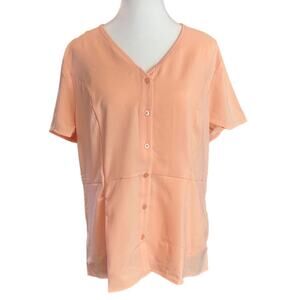 Denim & Co Button Front Top Soft Peach Size Medium Polyester Spandex Blend NEW