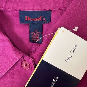 Denim & Co Button Front Trench Coat Size 2X Purple Long Sleeve A100855 NWT