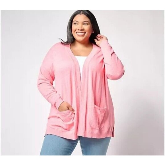 Denim & Co. By the Beach Sweater Cardigan with Pockets Flamingo Pink, Medium