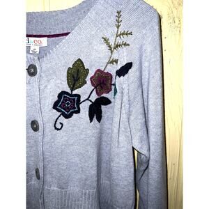 Denim & Co. Cardigan Sweater Womens 2X Button Jacket Embroidery Grandmacore NEW