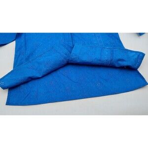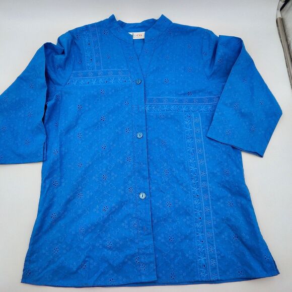 Denim & Co Cotton Eyelet Blue Button-Down Top Tunic Sz M Embroidered 3/4 Sleeve