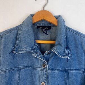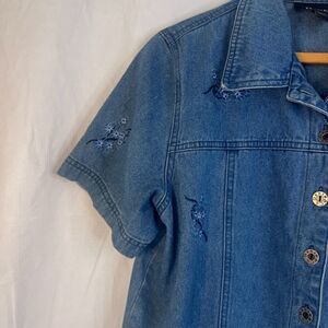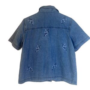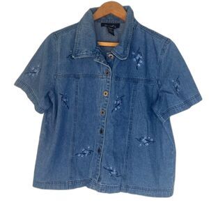 Denim & Co Embroidered Denim Shirt 100% Cotton Casual Cool Boho Retro Size MD