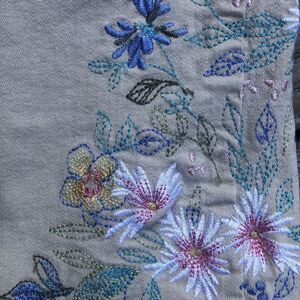 Denim & Co. Embroidered Straight Leg Women Pants Sz Large Denim Mom Jeans Tan