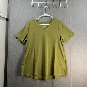 Denim & Co. Essentials Jersey V-Neck Short Sleeve Swing Tunic Olive Medium