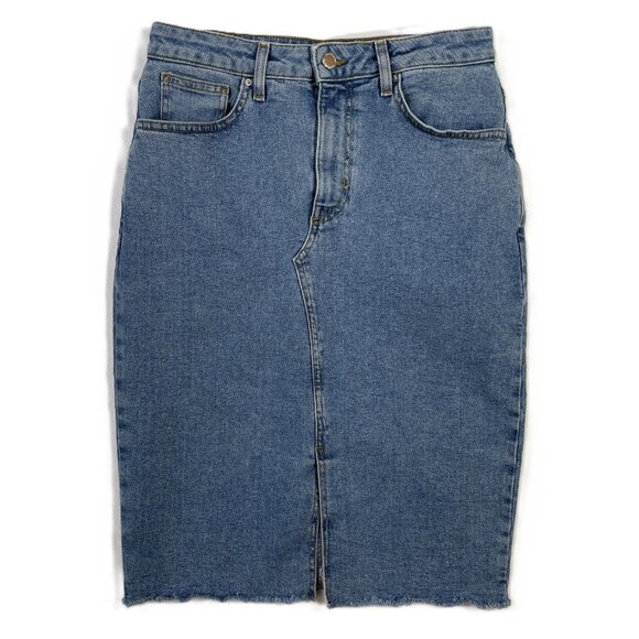 Denim Co Est 1969 Midi Jean Skirt Size 8 Light Wash Distressed Hem Front Slit