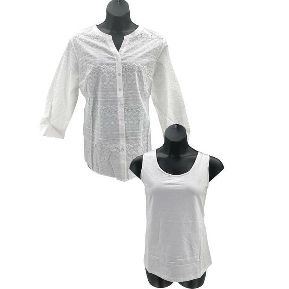 Denim & Co. Eyelet Button Front White Shirt & Tank Set XXS New A351579