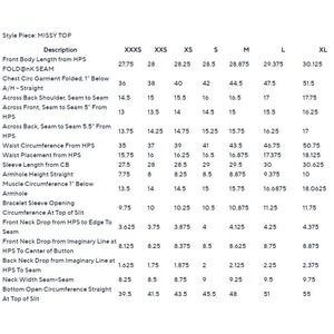 Shirt Length: missy length 28" to 30-1/8"; plus length 30-1/2" to 32-1/4"