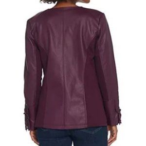 Denim & Co Faux Leather Jacket with Ruffle Detail
