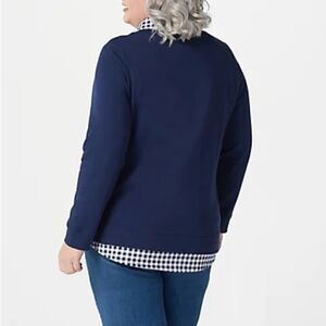 Denim & Co. French Terry Printed Collar and Hem Petite Top