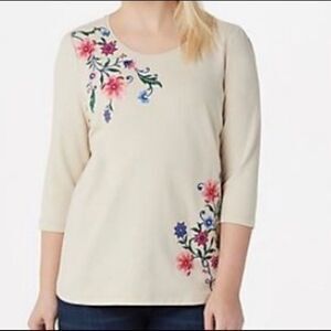 Denim & Co. French Terry 3/4-Sleeve Embroidery Top