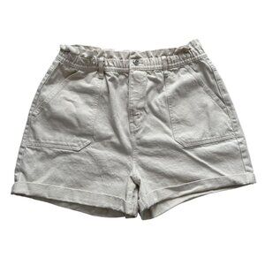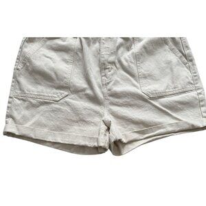 Denim Co High-Waisted Cream Womens Cotton Shorts Rolled Hem & Pockets Size 14