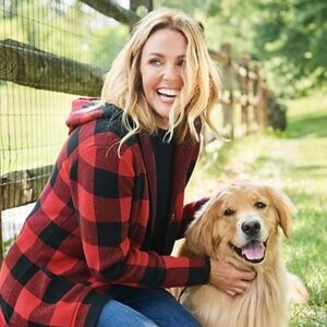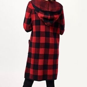 Denim & Co. Hooded Jacquard Sweater Knit Cardigan/Apple Red & Black/L/NEW!
