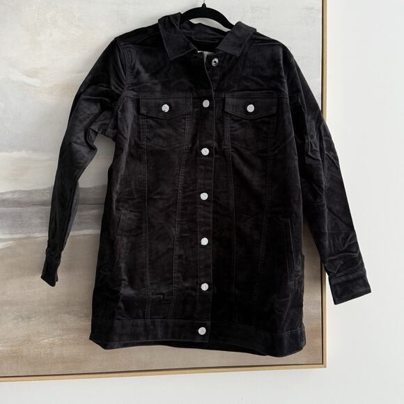 Denim & Co Jacket Coat Sz Medium Black Velveteen Silver Buttons Pockets