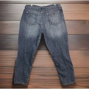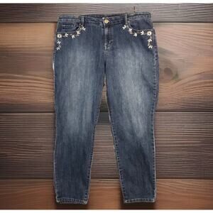 Denim &Co Jeans Womens 16 Comfort Stretch 38X28 Ankle Blue FLOWER EMBROIDERED