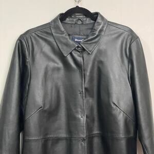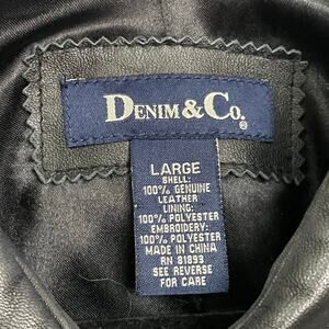 Denim & Co. L genuine leather jacket bohemian boho chic black gray collar swirl