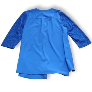 Denim & Co. Lace Sleeve Blue Button Up Blouse M