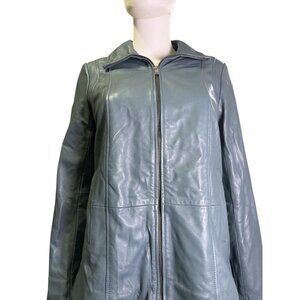 Denim & Co Lambs Leather Zip Front Jacket with Pockets Dark Slate Size M, EUC
