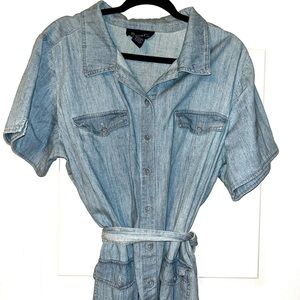 Denim & Co. Light Blue Denim Belted Button Down Midi Dress 1x