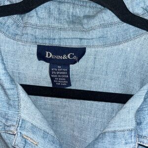 Stylish light blue denim dress by Denim & Co. Perfect for casual wear.