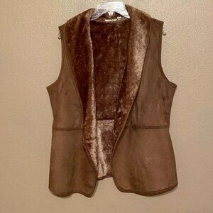 Denim & Co. Microsuede Faux Fur lined Winter vest Brown Size M with Side Pockets