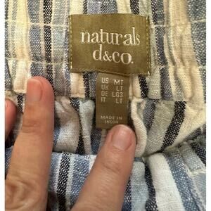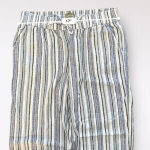 Denim & Co Naturals Blue Stripe Wide Leg Linen Blend Elastic Waist Pant Size MT