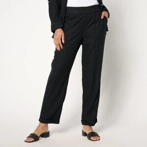 Denim & Co. Naturals Petite Linen Blend Straight Leg Pant 15538