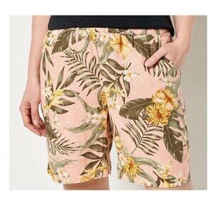 Denim & Co. Naturals Regular Linen Blend Shorts Khaki Palm 4X A503605