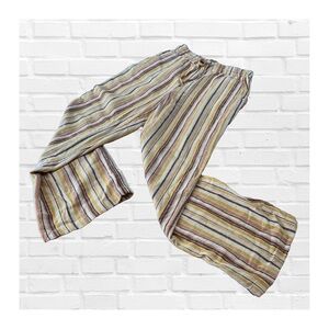 Wide Leg, Linen, Stripes, Yellow, Maroon, Brown, Cream, Elastic Waist, XXS, Beach, Vacation, Cruise, Holiday, Lagenlook,