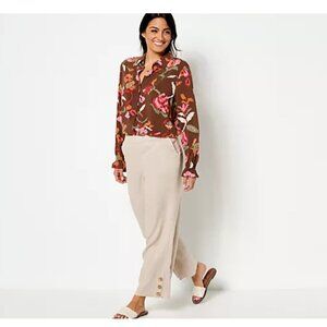 Denim & Co. Naturals Women ~ Pants Linen Blend Side Button Ankle L Red A500902