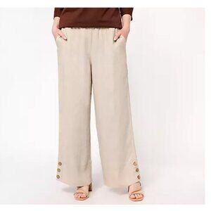 Denim & Co. Naturals Women ~ Pants Linen Blend Side Button Ankle M Khaki A500902