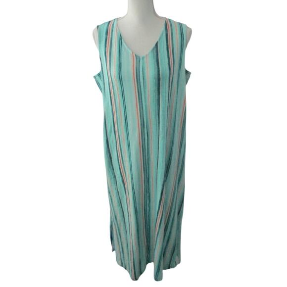 Denim & Co. Naturals Women's Blue Striped Sleeveless Stretch Maxi Dress Size L.