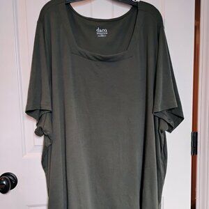 Denim& Co. Olive Green Square Neckline Cotton Tee Shirt-5X- EUC