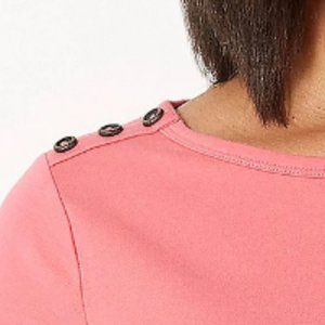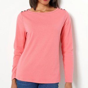 Denim & Co Perfect Jersey Boat Neck Long- Sleeve Top w/Button Detail 11479