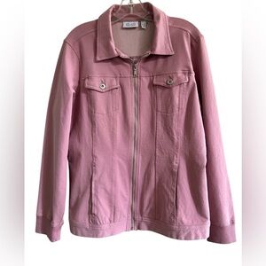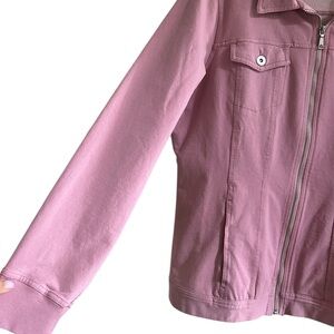 Denim & Co Pink Zip Front Jacket Pockets Stretchy Cotton Size Large