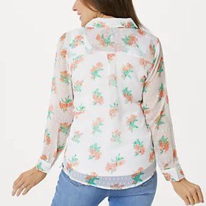 Denim & Co Printed Swiss Dot Long-Sleeve Shirt with Tank 10169