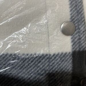 Features: printed fleece bonded with sherpa, foldover collar, side seam pockets, long sleeves