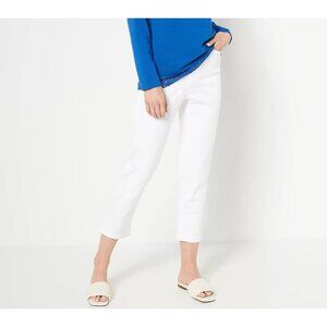 Denim & Co. Regular Easy Stretch Denim Side Slit Crop Jean White 14 A500953