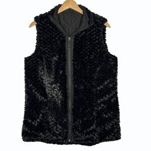 Denim & Co Reversible Zip Front Textured Faux Fur Quilted Vest Size XS Capsule