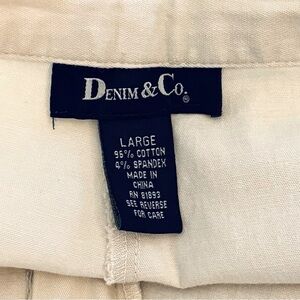 Denim & Co Size Large Cream Wide Leg Cropped Pants Cotton Spandex