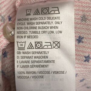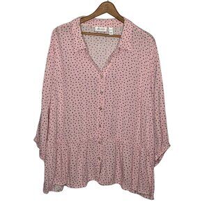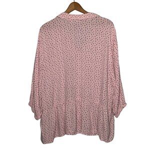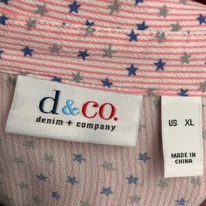 Denim & Co Size XL Pink Striped Star Print Collared 3/4 Sleeve Rayon Peplum Top