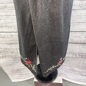 Denim & Co Skirt Plus size 1X Black Denim Jean Long Straight Floral Embroidery
