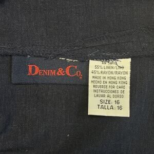 Denim & Co. Sleeveless Sz 16 Navy Linen Blend Shift Maxi Dress Side Slits Career