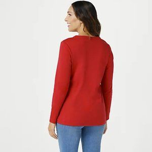 Denim & Co. Split V-Neck Long Sleeve Top 7194