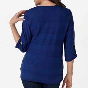 Denim & Co Stripe 3/4-Sleeve Top with Sleeve Details 11354