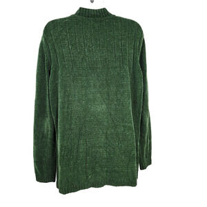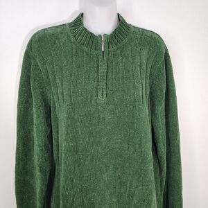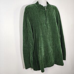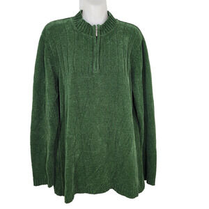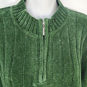 Denim & Co Sweater Large Chenille Half Zip Mock Neck Pullover Long Sleeve Green