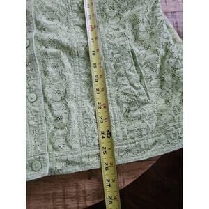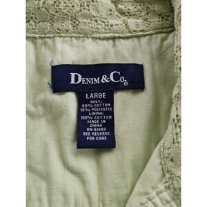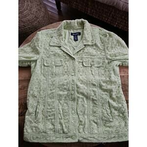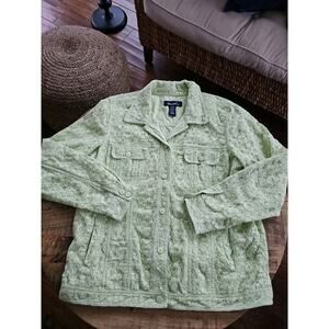 Denim & Co Sz Large Romantic LIME Green Lace Floral Jacket Button Up Pockets