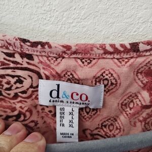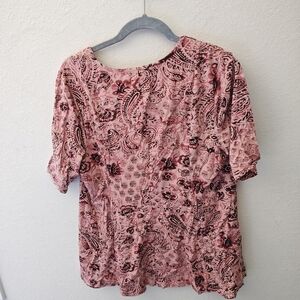 Denim & Co. Top Blouse Women Large Salmon Paisley Round Neck Short Sleeve Cotton
