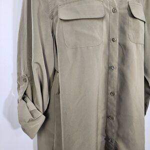 Denim & Co. Tunic Top Medium Roll Tab Sleeve Button Soft Utility A227885 Olive