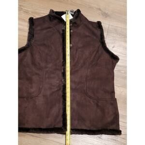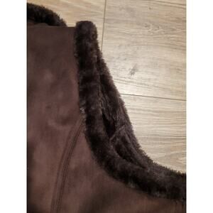 Denim & Co Vest Jacket Women's XL Faux Suede-Fur Trim Pockets Winter Layer Brown