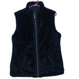 Denim & Co Vest L Reversible Zip Front Textured Faux Fur Quilted Winter Fall